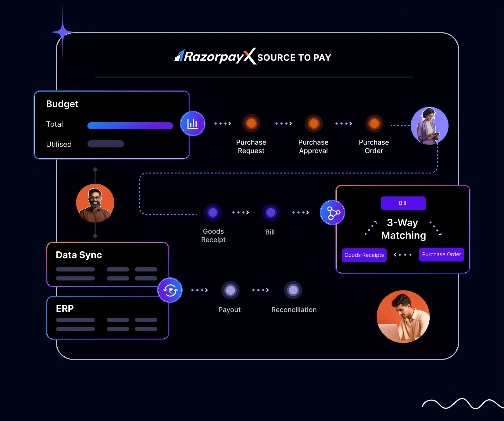 Accurate TDS auto-calculation, deduction, and payment on invoice. 3-way matching with OCR for error-free invoice processing (PO-GRN-Invoice).